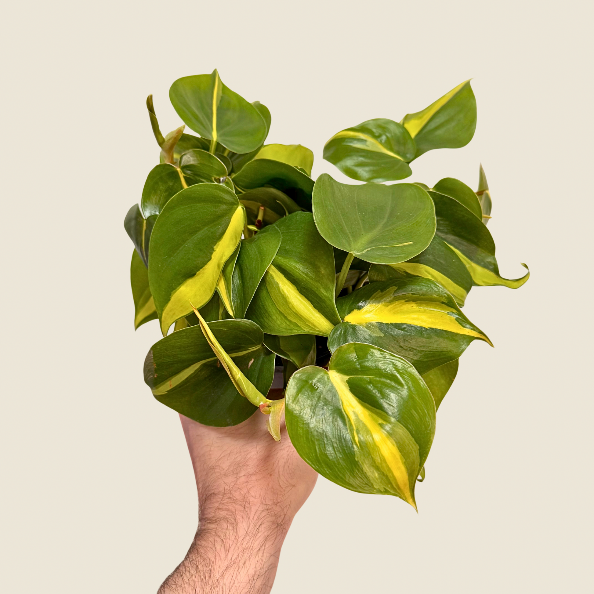 The Philodendron Brasil is a beloved trailing variety with heart-shaped leaves streaked in vibrant lime green and golden yellow variegation. Easy to grow and fast to trail, it adds a lively splash of color to shelves, hanging baskets, or plant walls.